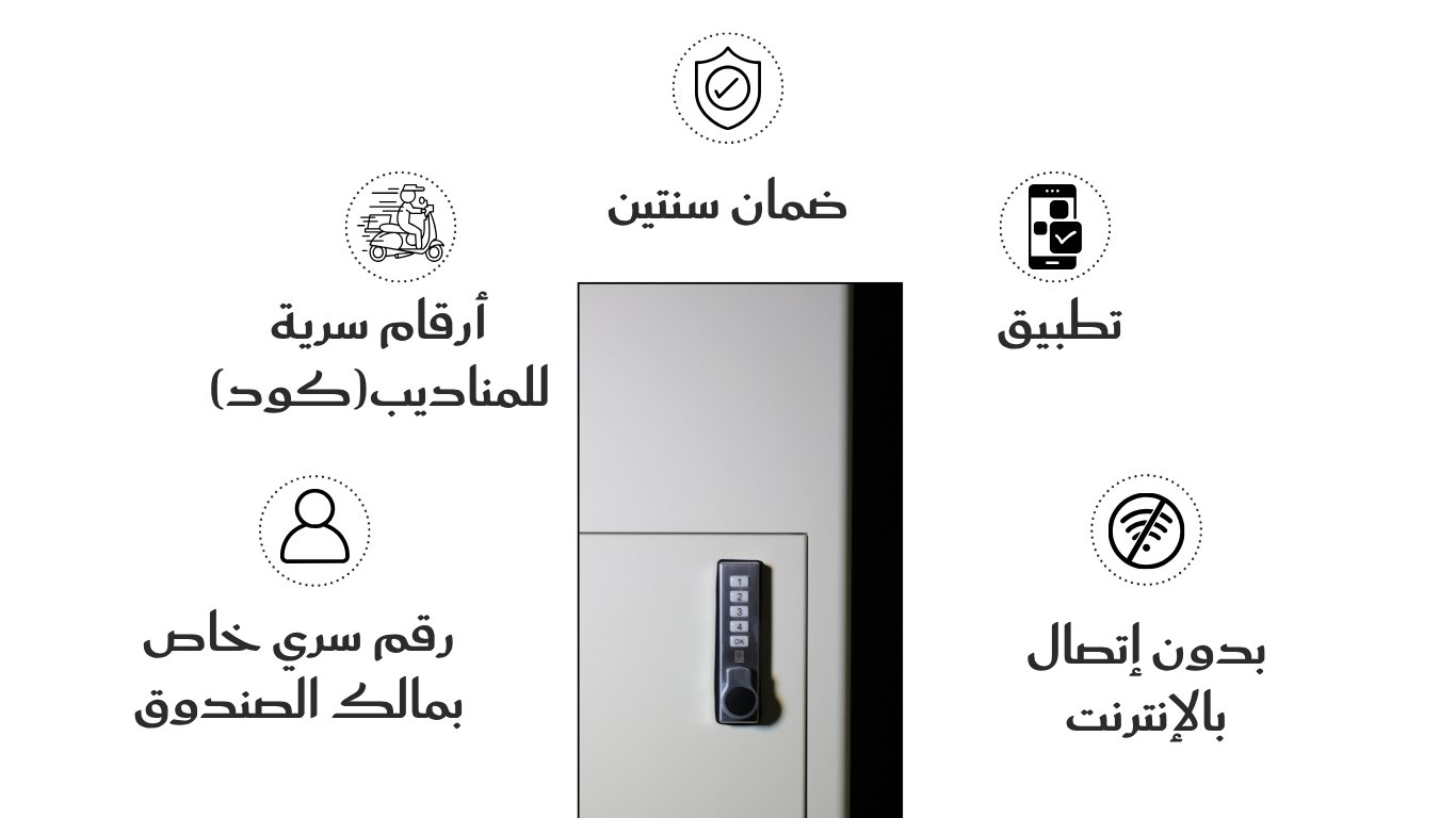 هل تبحث عن حل آمن وفعّال لاستلام الطرود؟ صندوق "سهل" هو الحل الأمثل. يتميز بتصميم مبتكر يجمع بين الأمان والمرونة، حيث يتيح نظام الفتح والإسقاط الأمامي استلام الطرود الصغيرة بسهولة، بينما يوفر الباب الجانبي المزود بقفل ذكي إمكانية استلام شحنات الطعام أو الشحنات الكبيرة باستخدام أرقام سرية مؤقتة تُنشأ عبر تطبيق مخصص.